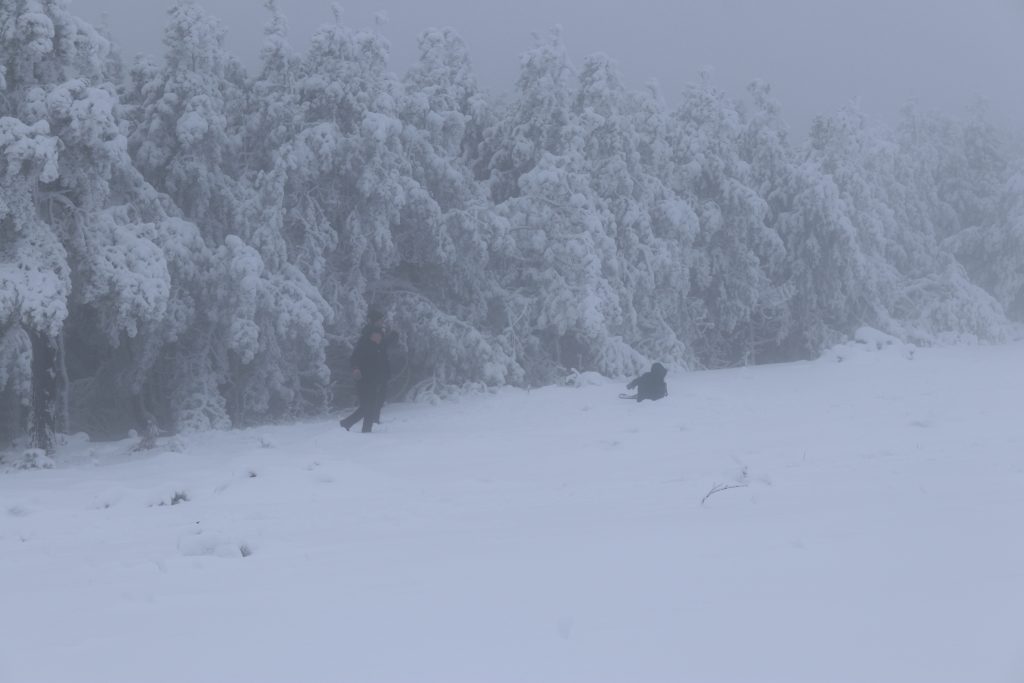 Llegamos sin problemas a la cresta de la Sierra, a 1900 metros de altitud, donde los más jóvenes se dedican a jugar con la nieve e intentar hacer un poco de snowboard. No para de nevar, hay mucha niebla y la temperatura es perfecta, entre 2 y tres grados. Sin duda las condiciones ideales para tomarnos una cerveza y una tapa de jamón serrano que sabe a gloria. Aprovechamos para cantar el cumpleaños feliz a Clara que cumple 31 años.
