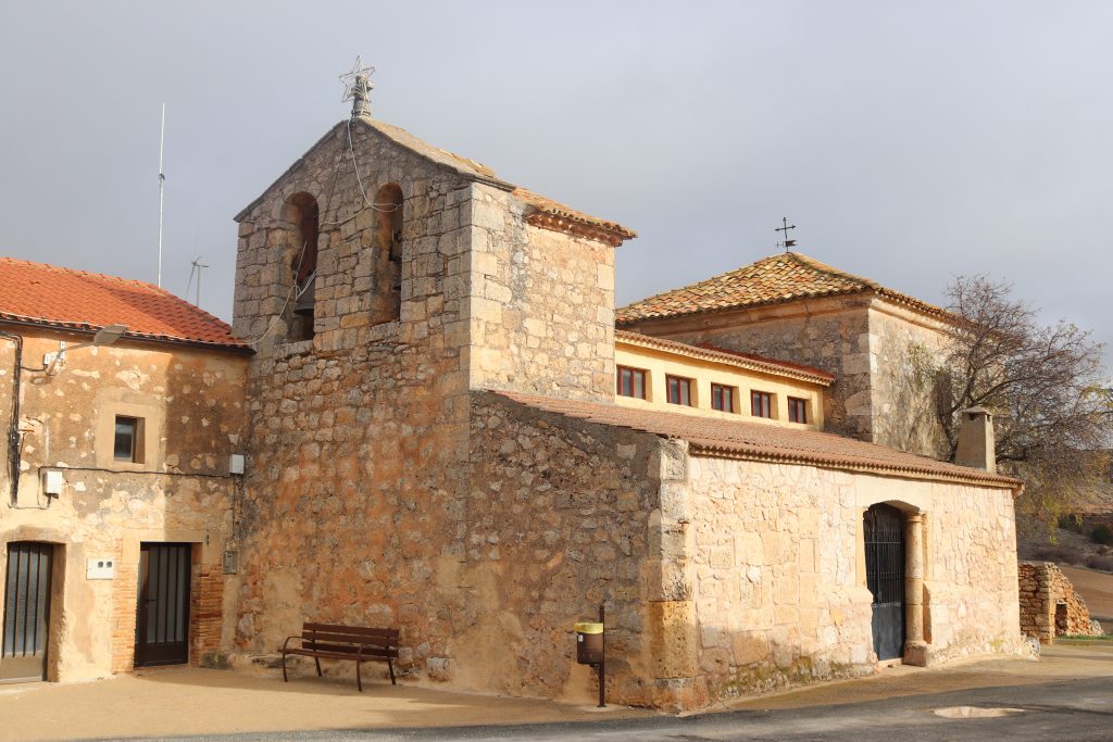 Efectuamos parada en Mosarejos, pueblo prácticamente abandonado, donde seguimos recolectando nueces a la vez que visitamos la Iglesia románica de Santo Tomás Apóstol. Esta iglesia aún mantiene una bella portada y un interior en ruinas que nos sorprende agradablemente. En este pueblo también existe una atalaya islámica del siglo X que controlaba el paso hacia Gormaz y que hoy en día está reconvertida en palomar. Recolectamos más nueces, alguna que otra manzanita y rellenamos la botella de agua en una fuente a la entrada del pueblo que parecía potable y menos mal que finalmente sí lo era.