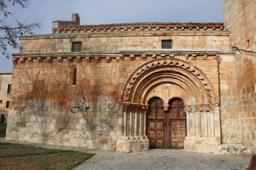 Por camino de tierra nos desplazamos hacia Caltojar (no hay carretera asfaltada, pero es muy accesible), dejando para otro día la visita a las atalayas que vigilan la zona. En Caltojar aparcamos en la plaza del pueblo, a los pies de la impresionante iglesia románica de San Miguel Arcángel (primer tercio del s. XIII). Esta iglesia es uno de los mejores exponentes del románico Soriano y con otra de las mejores portadas de la provincia sin duda alguna. Parece que sale el sol y disfrutamos de un sabroso bocadillo de jamón en un asiento de piedra que forma parte del lateral de la soberbia portada de al menos 800 años. Se ve alguna casa ocupada pero no hay signo de vida en el exterior hasta que aparece un anciano vecino y nos pregunta si queremos ver el interior de la iglesia.